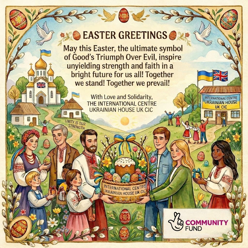 З Великоднем від усієї команди Ukrainian House UK 💛 Цей час — про надію, відновлення та єдність.Ми щиро вдячні нашим британським друзям і громадам за підтримку України — ваша доброта справді має значення. Через нашу ініціативу Blood Solidarity ми щодня бачимо, як співчуття рятує життя та об’єднує людей без кордонів. Бажаємо вам світлого, теплого і